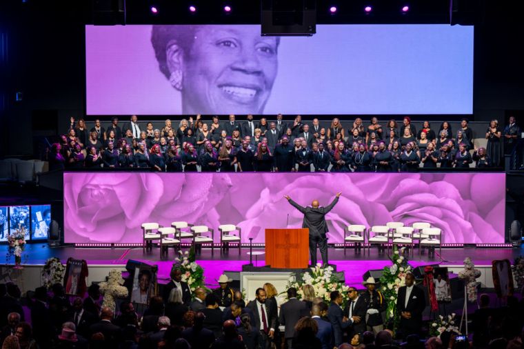 HOUSTON, TEXAS – AUGUST 01: A choir performs during Congresswoman Sheila Jackson Lee’s funeral service at the Fallbrook Church on August 01, 2024 in Houston, Texas. Members of the community and elected officials gathered to honor the life of the late U.S. Rep. Sheila Jackson Lee. Vice President Kamala Harris among other elected officials are expected to be in attendance for the funeral, where she will deliver remarks and the eulogy. (Photo by Brandon Bell/Getty Images) color image,photography,horizontal,usa,texas,houston – texas,politics,funeral,gulf coast states,choir,politics and government