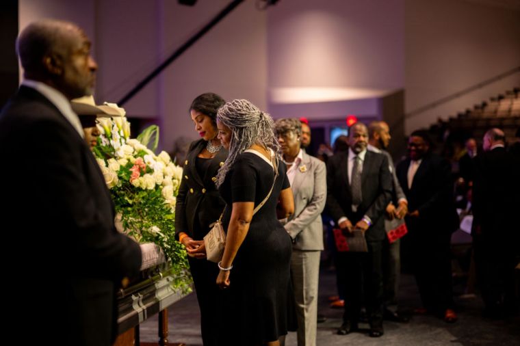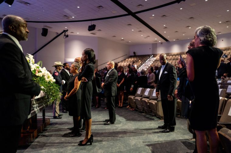 HOUSTON, TEXAS – AUGUST 01: People mourn the death of Congresswoman Sheila Jackson Lee during her funeral service at the Fallbrook Church on August 01, 2024 in Houston, Texas. Members of the community and elected officials gathered to honor the life of the late U.S. Rep. Sheila Jackson Lee. Vice President Kamala Harris among other elected officials are expected to be in attendance for the funeral, where she will deliver remarks and the eulogy. (Photo by Brandon Bell/Getty Images) color image,photography,people,horizontal,usa,medium group of people,death,texas,houston – texas,politics,funeral,gulf coast states,sheila jackson-lee,politics and government,member of congress