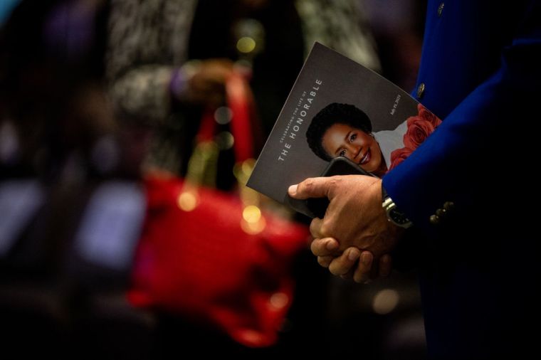 HOUSTON, TEXAS – AUGUST 01: People mourn the death of Congresswoman Sheila Jackson Lee during her funeral service at the Fallbrook Church on August 01, 2024 in Houston, Texas. Members of the community and elected officials gathered to honor the life of the late U.S. Rep. Sheila Jackson Lee. Vice President Kamala Harris among other elected officials are expected to be in attendance for the funeral, where she will deliver remarks and the eulogy. (Photo by Brandon Bell/Getty Images) color image,photography,people,one person,horizontal,usa,death,texas,houston – texas,politics,funeral,gulf coast states,sheila jackson-lee,politics and government,member of congress