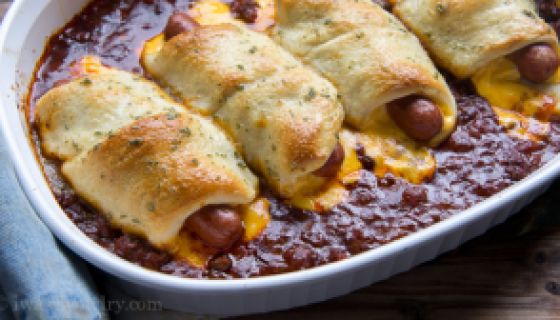 Ingredients 1Â can (14 to 15 oz) chili, heated 1Â can Pillsburyâ„¢ refrigerated classic pizza crust 4Â Cheddar cheese sticks 4Â all-beef hot dogs 2Â tablespoon butter 1/4Â teaspoon garlic powder 1/4Â teaspoon parsley flakes Click here for Directions