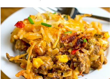 Ingredients 1 lb lean ground beef (80%) 1/2 cup diced green bell pepper, divided 1/2 cup diced red bell pepper, divided 1/2 cup corn 2 pkg taco seasoning 1 can (10.5 oz) tomato soup 1 pkg (3 oz) low-fat cream cheese* 1/2 cup chopped onion, divided 2 cups Mexican-style shredded cheese, divided 1 tsp salt […]